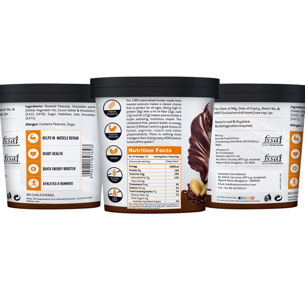HEALTH FOOD THAT TASTES GREAT: A clean source of nutrition infused with delicious chocolate flavour is an absolute delight for vegetarians and vegans. Peanut butter makes a great alternative to dairy butter, it is ideal for applying on bread, sandwiches, drizzling over fruits, stirring with protein shakes, oatmeal, and smoothies. The chocolate flavoured peanut butter pairs well with bananas, apples, can be used to make energy balls, protein bars, cookies, or even spooned straight from the jar.