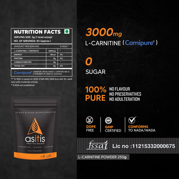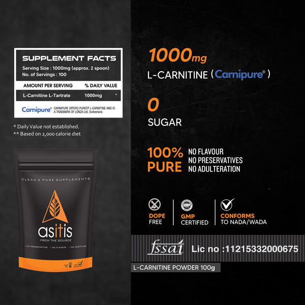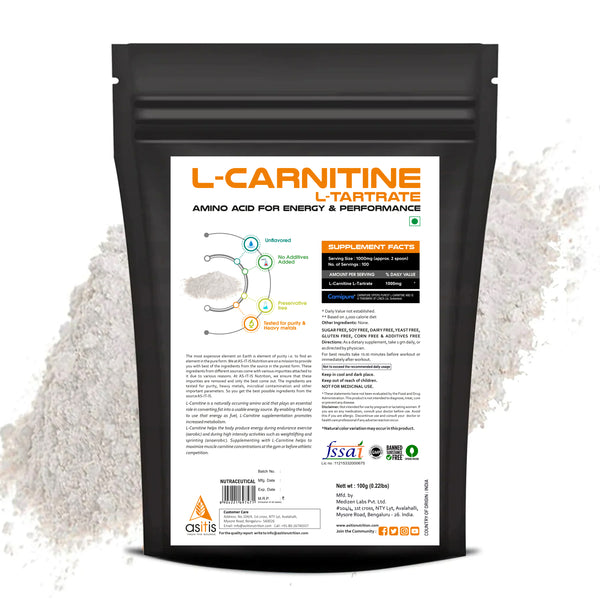 AS-IT-IS Nutrition Pure L-Carnitine L-Tartarate Powder, Amino Acid for Energy & Performance