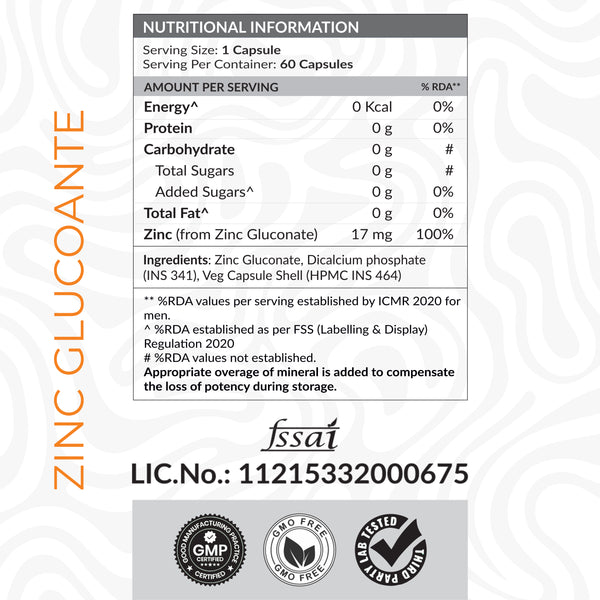 ATOM Zinc Gluconate 118mg I 17mg Elemental Zinc I 60 Veg Capsules