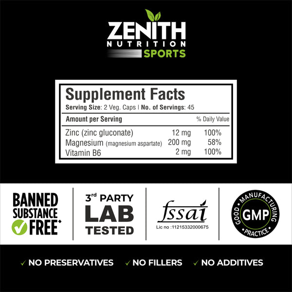 NATURAL MINERAL FORMULA: Zenith Sports ZMA is a scientifically designed sports performance product which contains tested natural anabolic mineral support formula. The all-natural product is manufactured employing a unique proprietary process which reinforces the absorption and utilization of both zinc and magnesium. The combination of minerals offers a multitude of physique and performance benefits, while vitamin B6 is involved in metabolism, brain and immune health.